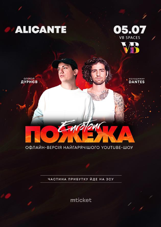 This summer "Pozhezha» уже тогда sets off on a new journey through Europe: next in line are Poland and, for the first time, Spain! In June and July, Oleksii Durniev and Volodymyr Dantes will visit Krakow, Wroclaw, Barcelona, Alicante, and Warsaw to give you the hottest concerts of your life. The rules remain the same: you buy tickets in your city, and the guys will organize the funniest, most candid, and most useful evening for you, where you can not only emotionally unwind and have a great time with your friends, but also make a good donation to the army. As always, a tumultuous attraction of humor, improvisation, and heartfelt communication awaits you — oh, how we can't wait! Get ready for butterflies in your stomach. See you at "Pozhezha"!